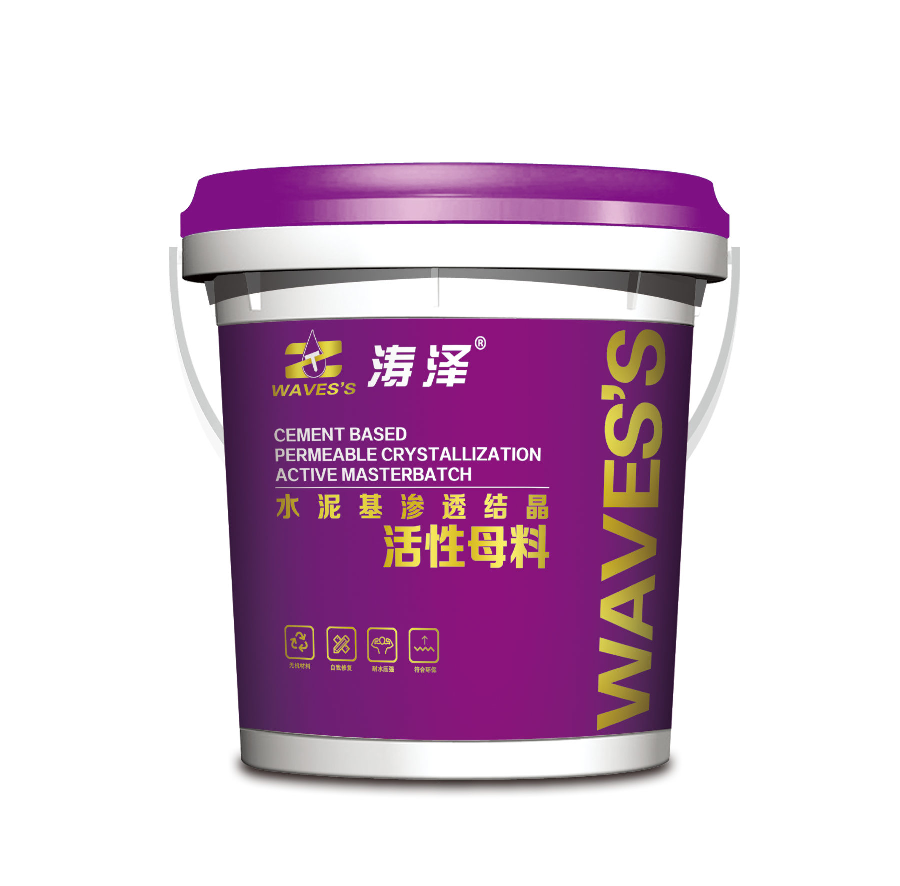 水泥基渗透结晶活性母料是专业用于生产:水泥基渗透结晶型防水涂料(简称:CCCW)的核心添加剂。其主要防水原理是:材料中含有的活性化合物与水作用后,以水为载体向砼的微孔及毛细管中渗透、充盈,渗透到砼内部孔隙中的活性化合物与砼内的游离氧化钙交互反应,生成不溶于水的枝蔓状纤维结晶物,结晶物在结构孔缝中吸水膨胀,由疏至密,逐渐形成一个致密的抗渗区域,从而使结构整体具备了优秀的防水抗渗能力,并有保护钢筋、增加密实度、提高强度的效果。由于水泥的水化反应是一个不完全的反应过程,在不失水的状态下,多年以后反应仍有进行,而在后期的水化反应过程中,同样能继续催化活性化合物而生成结晶,因此,结构即使被水再次穿透或局部受损开裂(裂缝小于0.4mm),在结晶的作用下也能自行修补愈合,具有多次防水抗渗的能力。
